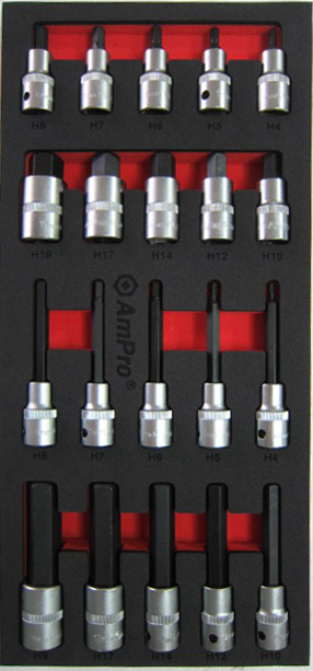 Приобрести T33217 Набор головок 1/2" с шестигранником, 20 предметов в мягком ложементе от компании AmPro (Тайвань) из раздела Ложементы мягкие (VA серия)