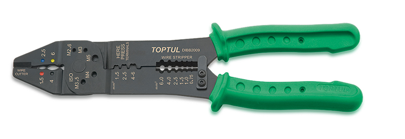 Приобрести Клещи для обжимки клемм и снятия изоляции TOPTUL DIBB2009 от компании Toptul (Тайвань) из раздела Клещи для обжима - кримперы по цене 1 895 рублей.