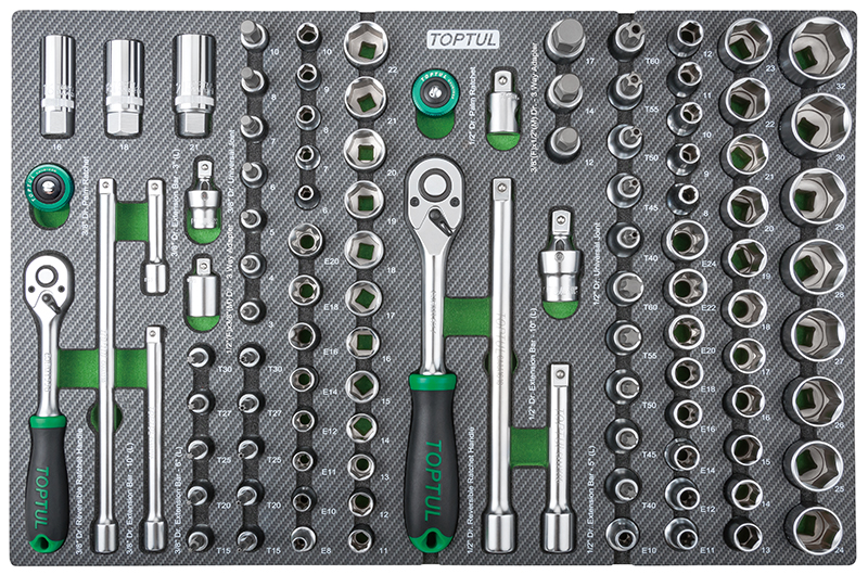 Набор головок и аксессуаров 3/8" и 1/2" 6-гр., 104 предмета в мягком ложементе (D) TOPTUL GEDA429 купить в Рязани и других городах России