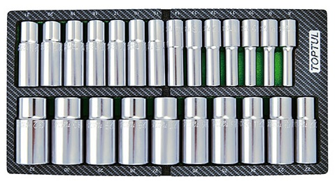 Набор головок удлиненных 1/2" 8-32 мм 24 предмета в мягком ложементе (A) TOPTUL