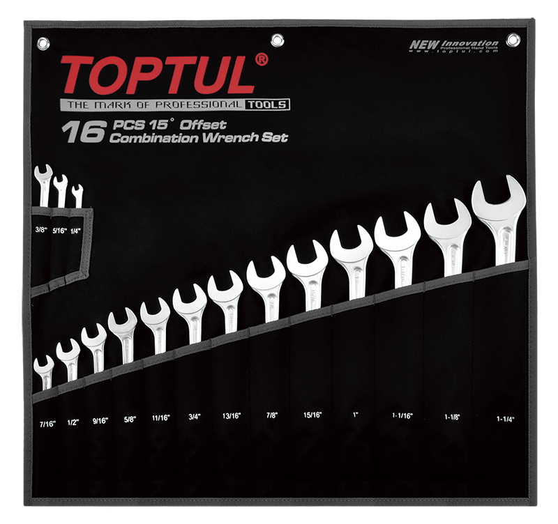 Набор ключей комбинированных дюймовых 1/4"-1-1/4", 16 предметов на полотне TOPTUL GPBX1601 купить в Рязани и других городах России