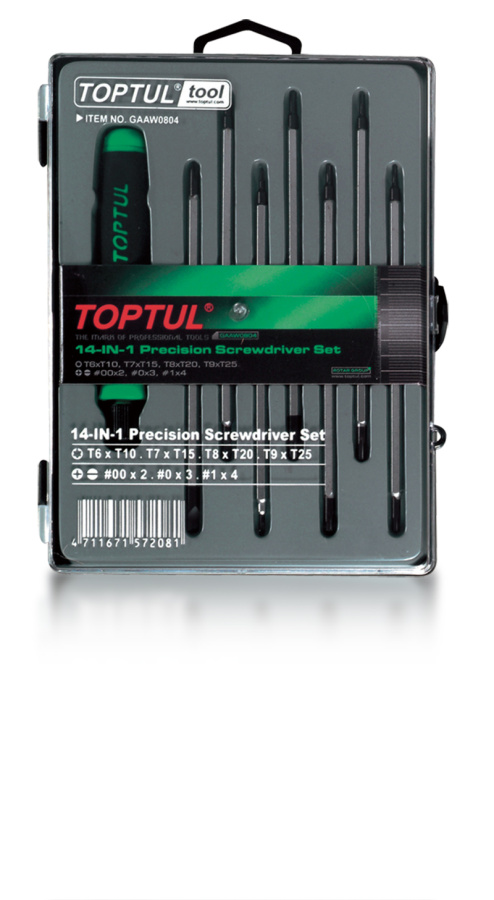 Набор отверток для точных работ 14в1 (TORX, PH, SL), 8 предметов в кейсе TOPTUL