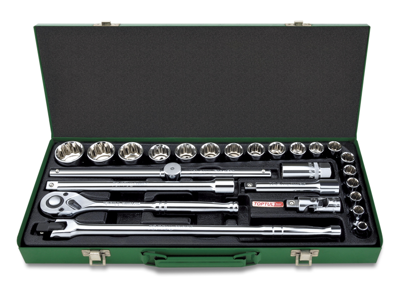 Набор головок и аксессуаров 1/2" 12-гранных дюймовых 5/16"-1-1/4", 25 предметов в метал.кейсе TOPTUL GCAD2514 купить в Рязани и других городах России