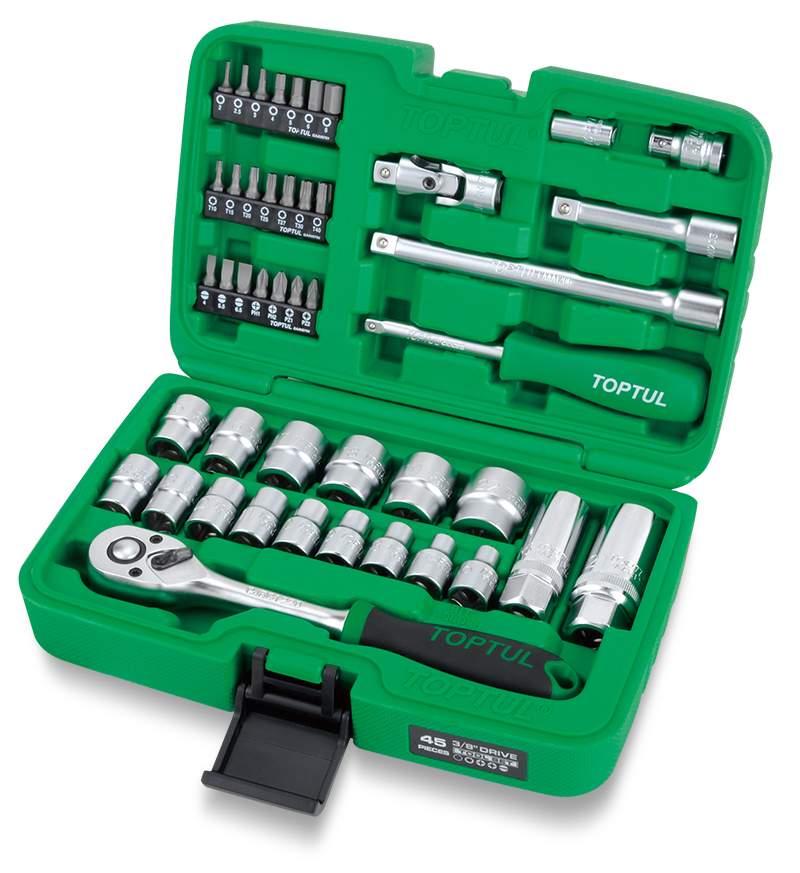 Набор головок и аксессуаров 3/8" 6-гранных 6-22 мм, 45 предметов TOPTUL GCAI4501 купить в Рязани и других городах России