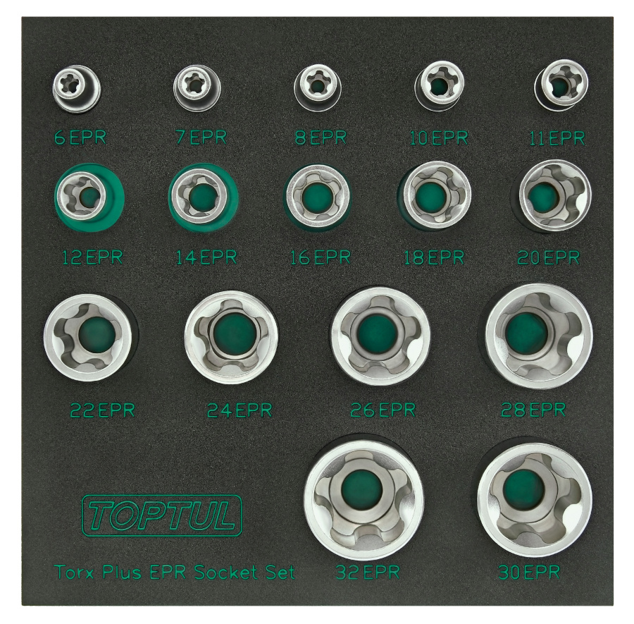 Набор торцевых головок TORX Plus EPR 1/4",3/8",1/2" 5-ти лучевые, 6EPR-32EPR, 16 пр. на ложементе TOPTUL GABF1601 купить в Рязани и других городах России